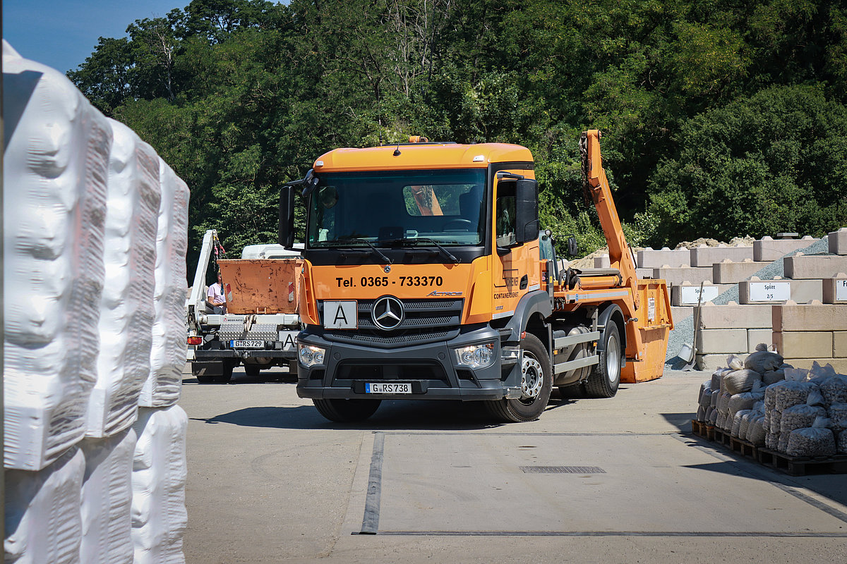 Containerfahrzeug | 3 | 1,5; 2,5; 3; 5; 7; 10 | 3500 | 1 | Schüttgüter, Entsorgung, Beton, Paletten |