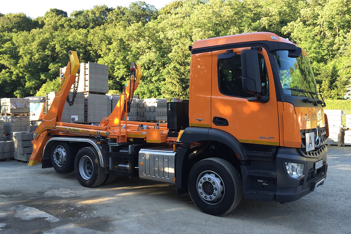 Containerfahrzeug | 3 | 1,5; 2,5; 3; 5; 7; 10 | 3500 | 1 | Schüttgüter, Entsorgung, Beton, Paletten |